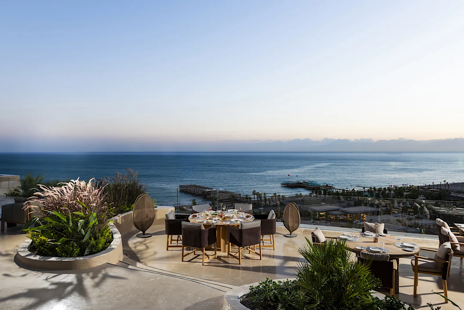 An adults-only fine dining venue where international cuisine meets panoramic sea views and a golden-hour glow.