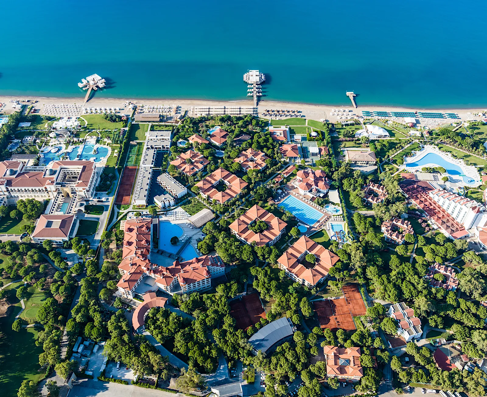 For golfers, Sirene Belek Hotel is less a base and more a gateway to two of Turkey’s finest courses—PGA Sultan and The Pasha—at Antalya Golf Club, just a short stroll or complimentary shuttle away. Designed by European Golf Design, with the expertise of David Jones, these courses blend strategic challenge with scenic beauty. The PGA Sultan (par 72, 6,477 m) demands precision and rewards bold play, while The Pasha (par 72, 5,731 m) offers a more forgiving yet equally memorable round. Both are PGA-licensed, with a welcoming clubhouse, a fully stocked pro shop, and excellent practice facilities. Whether you’re here for a golf holiday in Turkey or a casual round between beach days, Sirene Belek puts the fairways firmly within reach.